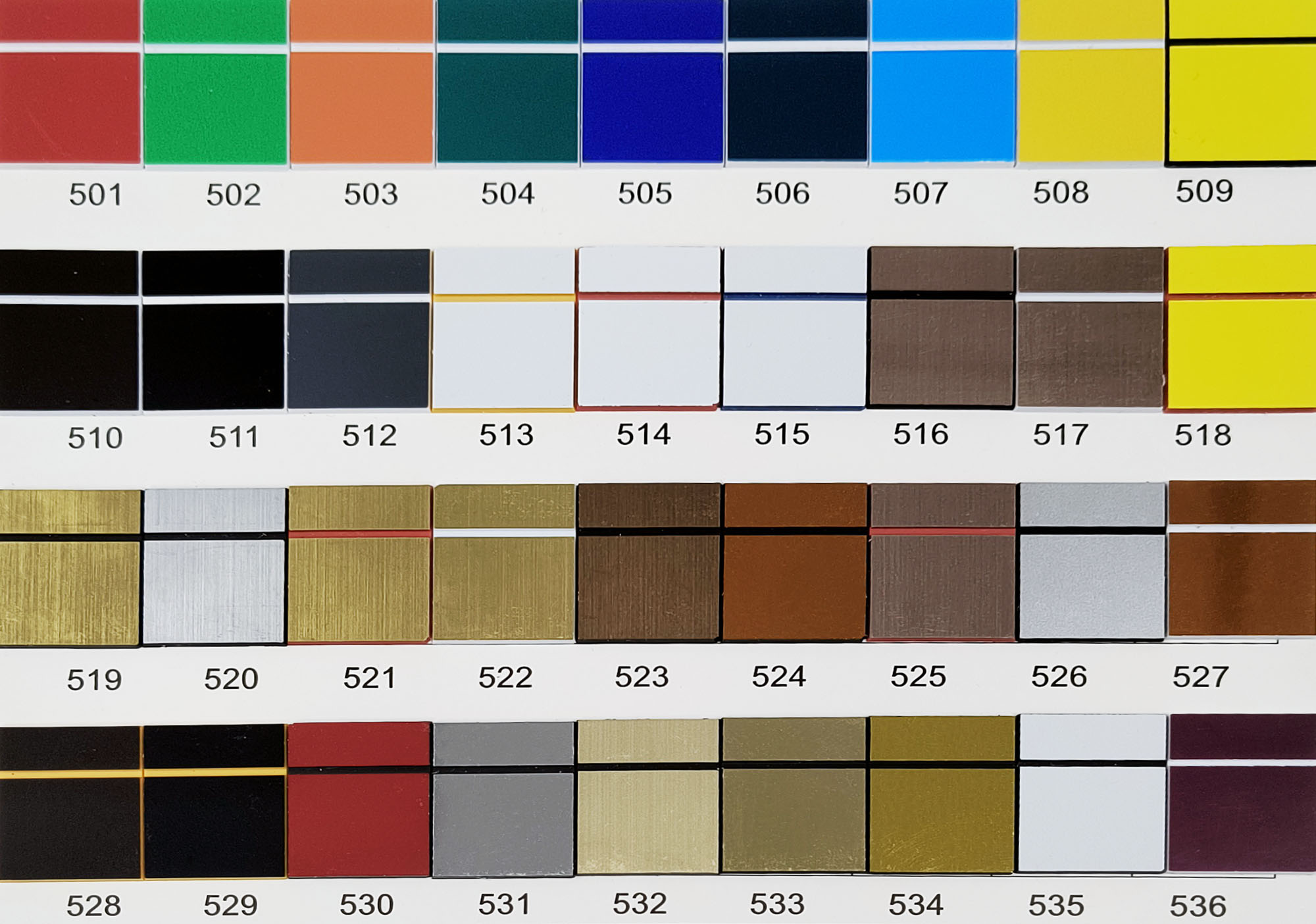Матови цветове: 501 | 502 | 503 | 504 | 505 | 506 | 507 | 508 | 509 | 510 | 511 | 512 | 513 | 514 | 515 | 518 | 526 | 528 | 529 | 530 | 532 | 535 | 536