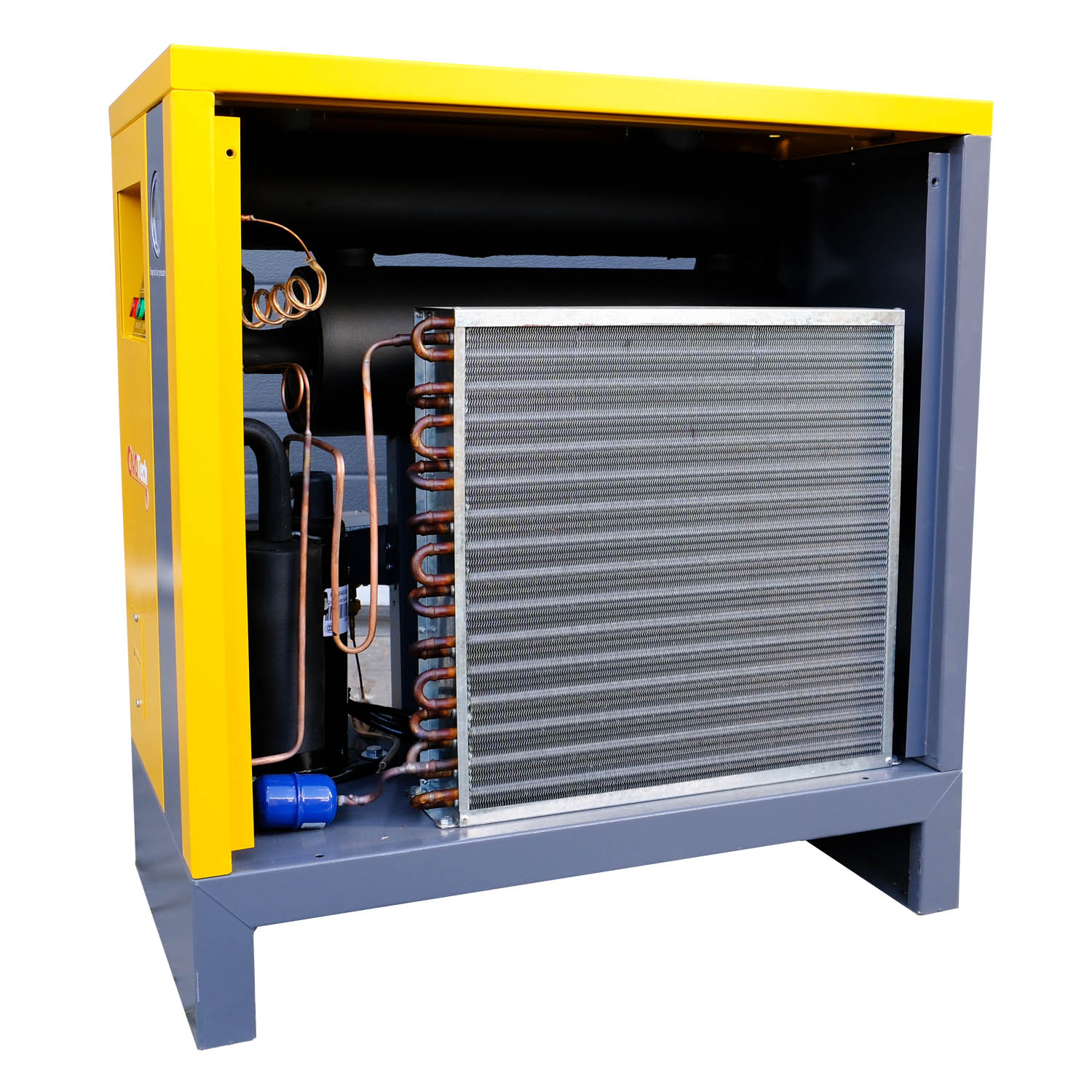 Благодарение на усъвършенстваната система за предварително охлаждане и използването на подсилени медни елементи в топлообменника, осушителят може да приема въздух с изключително висока входна температура – до 80°C. Това го прави идеален за употреба непосредствено след компресори и премахва необходимостта от допълнителни външни охладители.